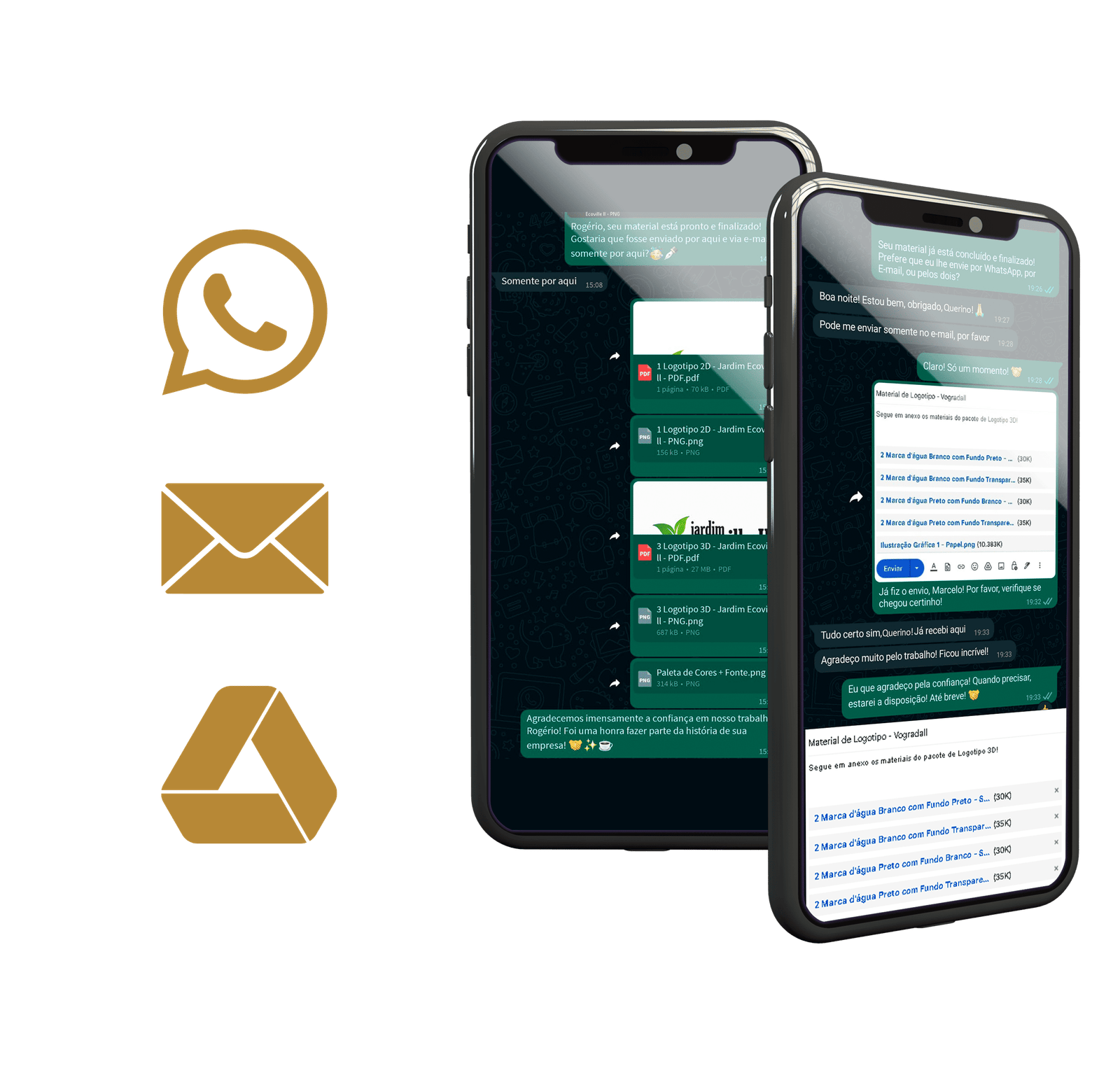 ● Seu material será entregue via WhatsApp, E-mail ou Google Drive após o envio do último pagamento (caso tenha efetuado inicialmente o pagamento de 50%).